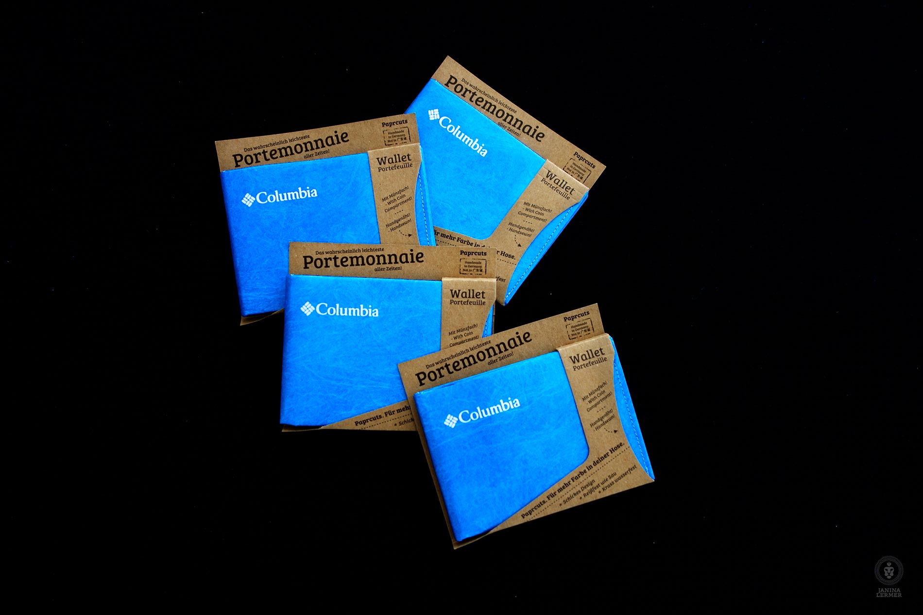 Der wasserabweisende, aus Papier gefertigte Geldbeute von Columbia ist ein beliebtes und nützliches Kundengeschenk an alle Fans der Marke Columbia Sportswear: Dünn, reissfest, wasserfest, vegan, recycelbar, dehnbar, 12-Monats-Garantie und echte deutsche Wertarbeit.